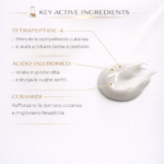 L’acido ialuronico aiuta a mantenere il giusto livello di idratazione, riducendo la visibilità delle micro-rughette del contorno occhi.