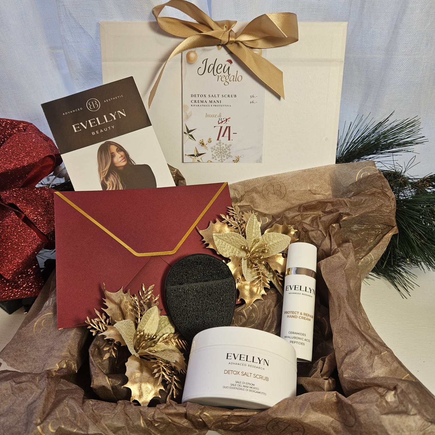 Regala alla tua pelle un rituale di bellezza che unisce l’azione purificante del sale detox alla cura intensiva e protettiva della crema mani.
